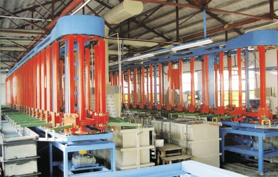 全自动垂直升降电镀线适用于中、小工件的小批量生产,主要用于五金电镀行业挂镀镍、铬、青铜、银等。本线采用液压传动,运行平稳可靠、噪音小;采用电脑自动控制系统,PC可编程序控制器控制本线,操作动作简单、准确;速度时间可根据电镀工艺的各项技术要求进行任意调控。设有缓冲装置,镀件夹持稳固;大大减少操作人员,提高电镀品质,生产效率高,产量大。